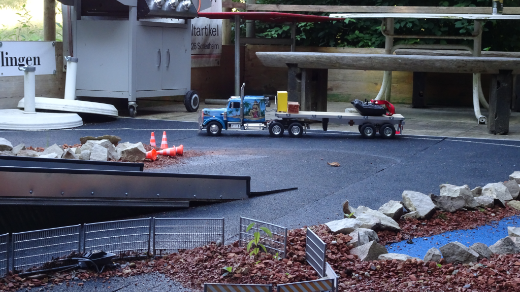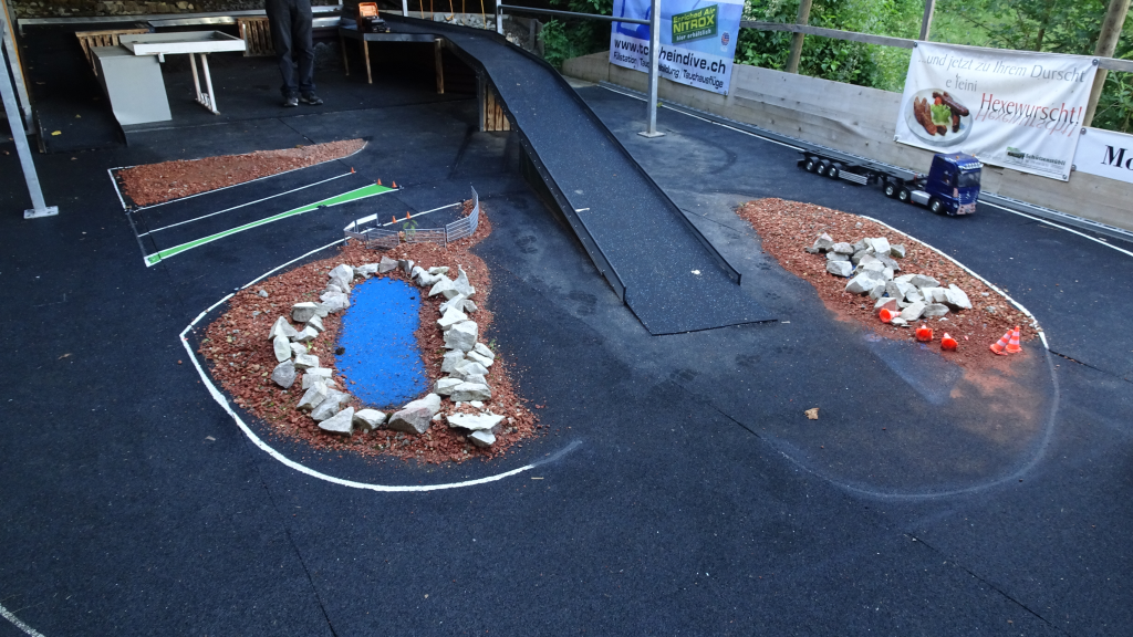Unsere Anlage im Freien wird kontinuierlich erweitert und verbessert, so dass mit allen Fahrzeugen herumgekurvt werden kann. Auch unsere Geländefahrzeuge haben eine "Spielwiese" inklusive Wasserdurchfahrten bekommen.